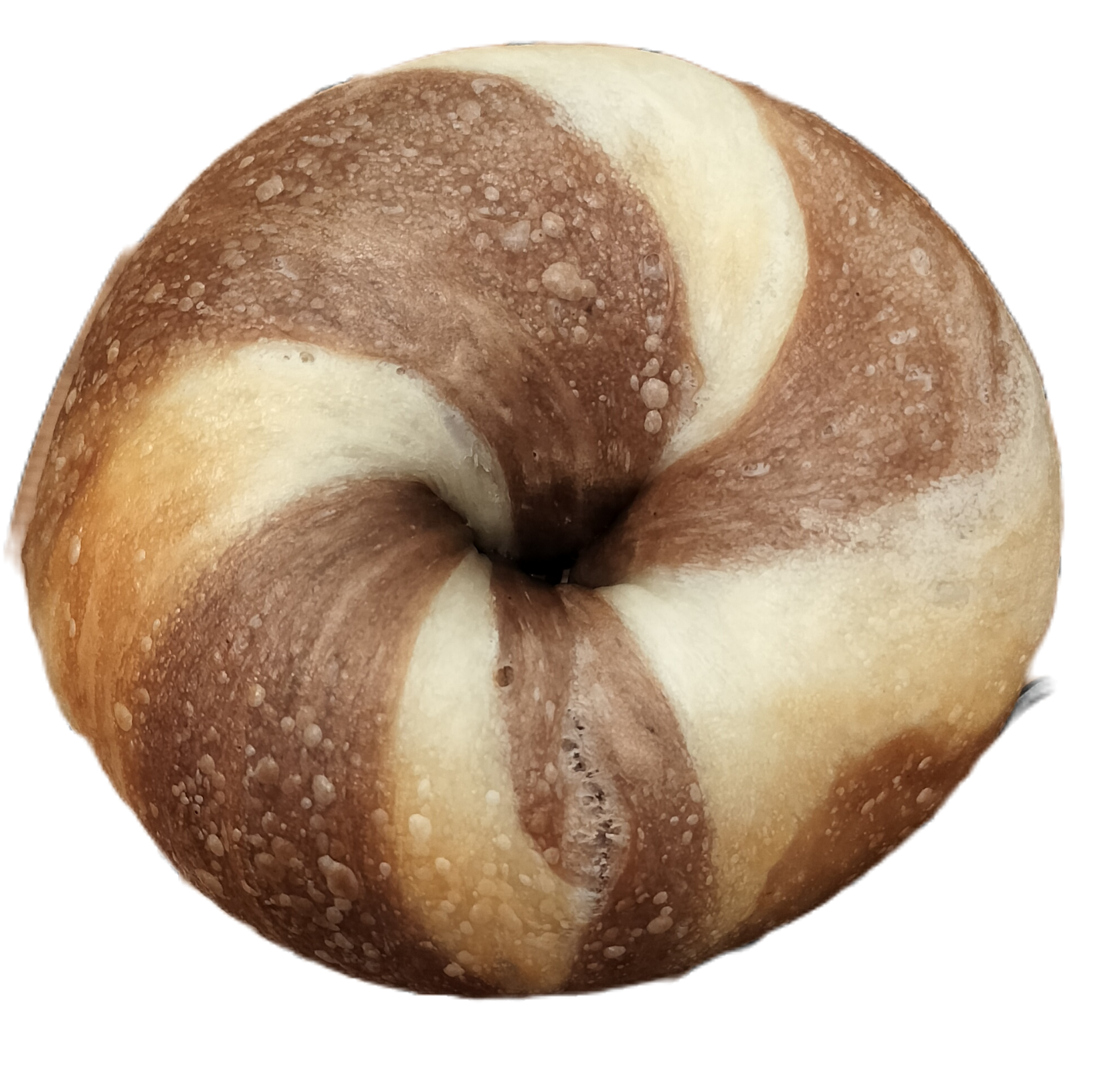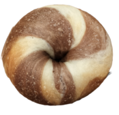ココアパウダーを練り込んだ生地とプレーン生地のしましまベーグル。