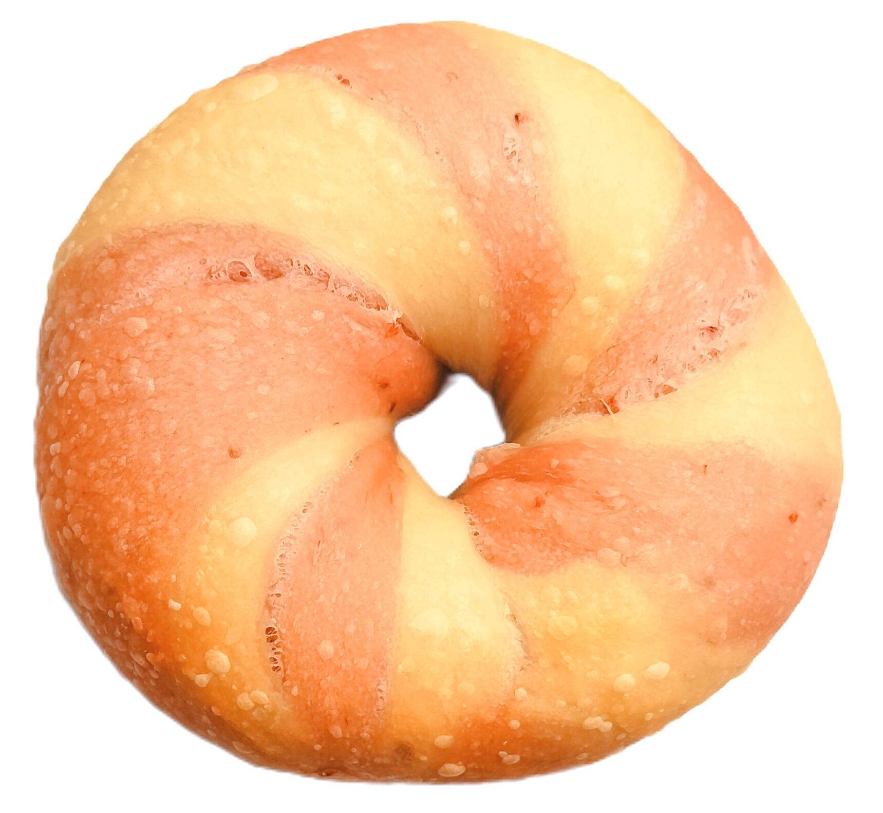 いちごを練り込んだ生地とプレーン生地のしましまベーグル。