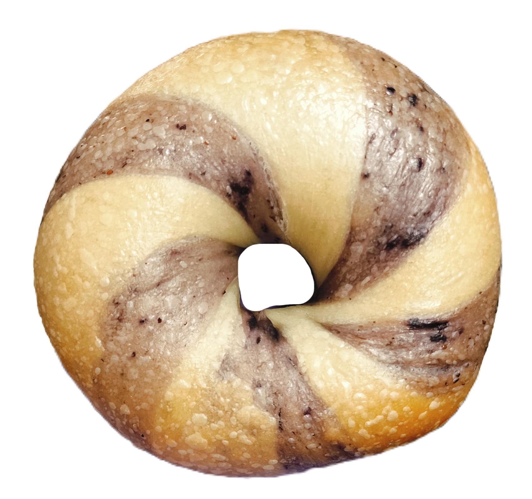 ブルーベリーを練り込んだ生地とプレーン生地のしましまベーグル。